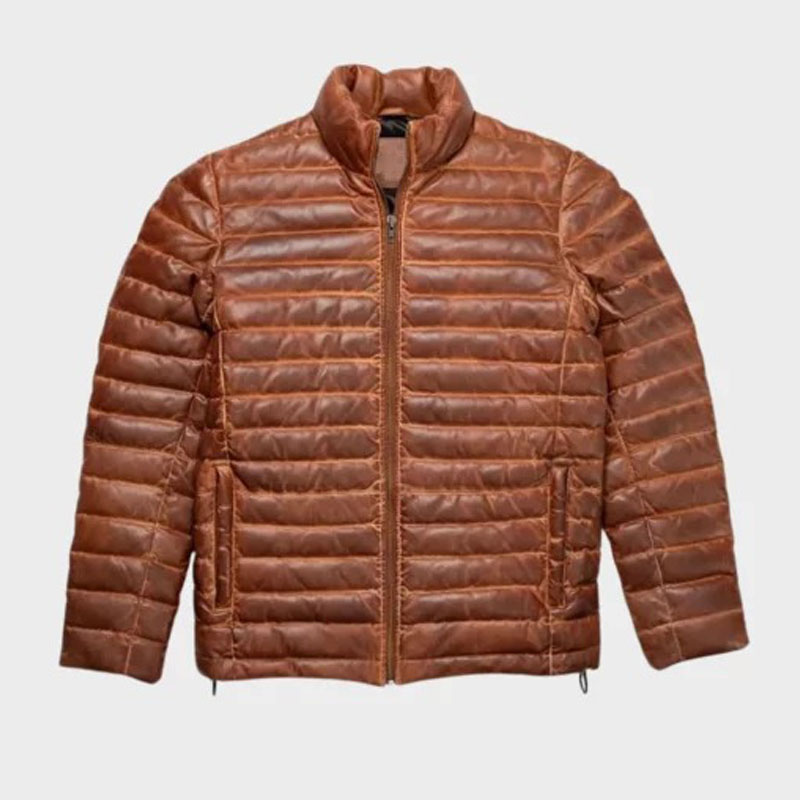 Men Antique Brown Puffer Quilted Jacket