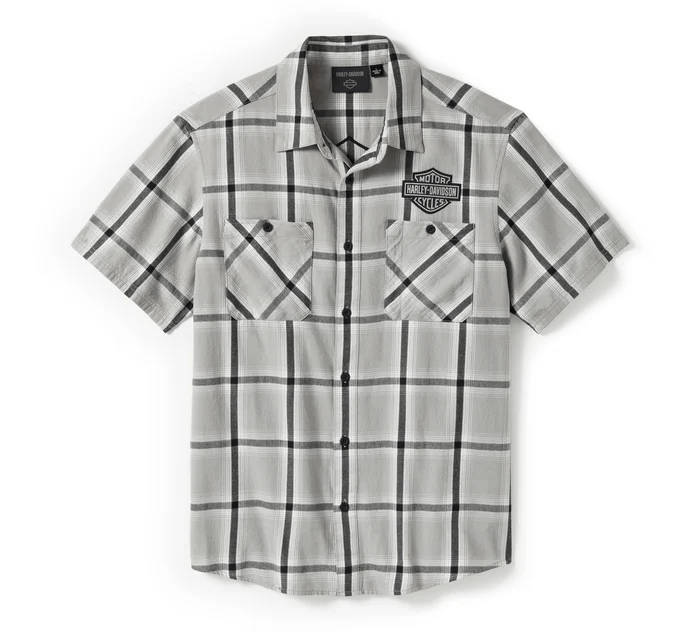 Bar & Shield Staple Short Sleeve Shirt – Plaid – Ghost Gray & Asphalt