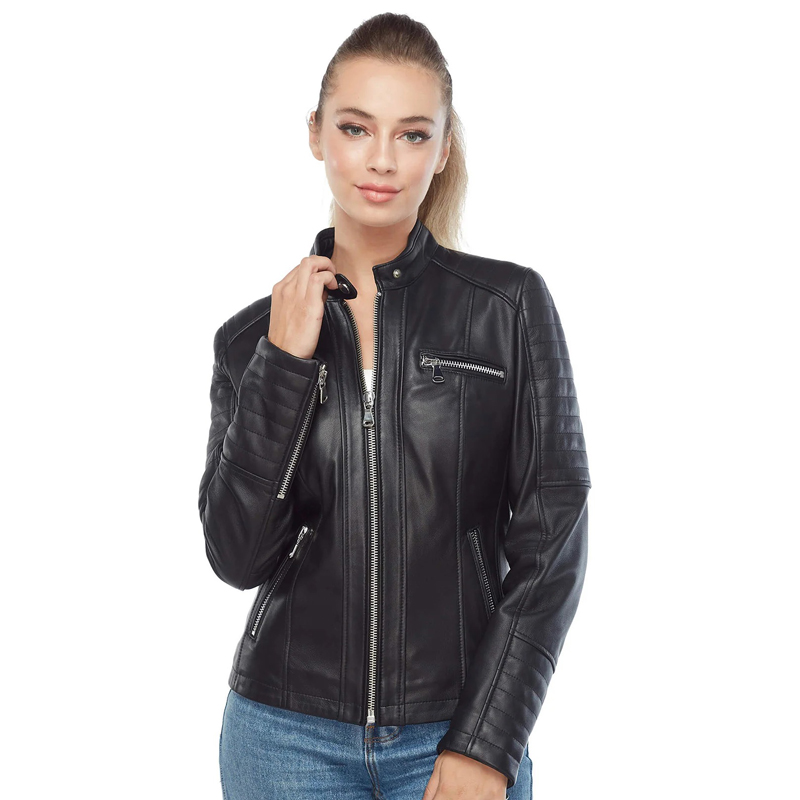 Women Cafe Racer Leather Jacket