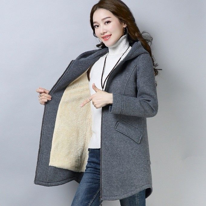 2020 Autumn Winter Women Fleece Thickened Hooded Jacket Cashmere Mid-length Warm Zipper Coat Female Woolen Loose Hooded Outwear