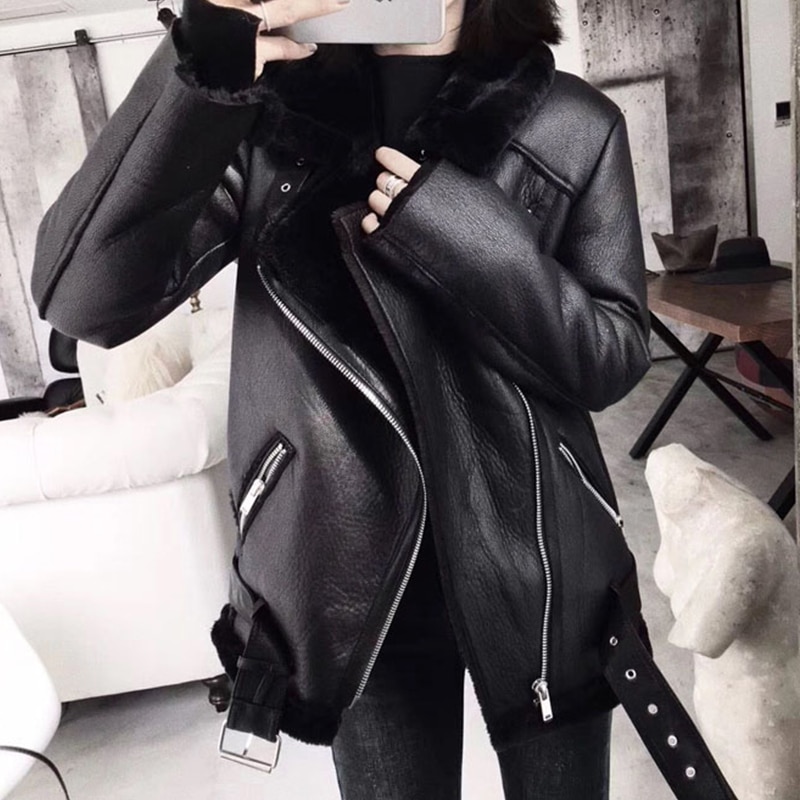 Ailegogo 2020 Winter Coats Women Thick Faux Leather Fur Sheepskin Coat Female Fur Leather Jacket Aviator Jacket Casaco Feminino