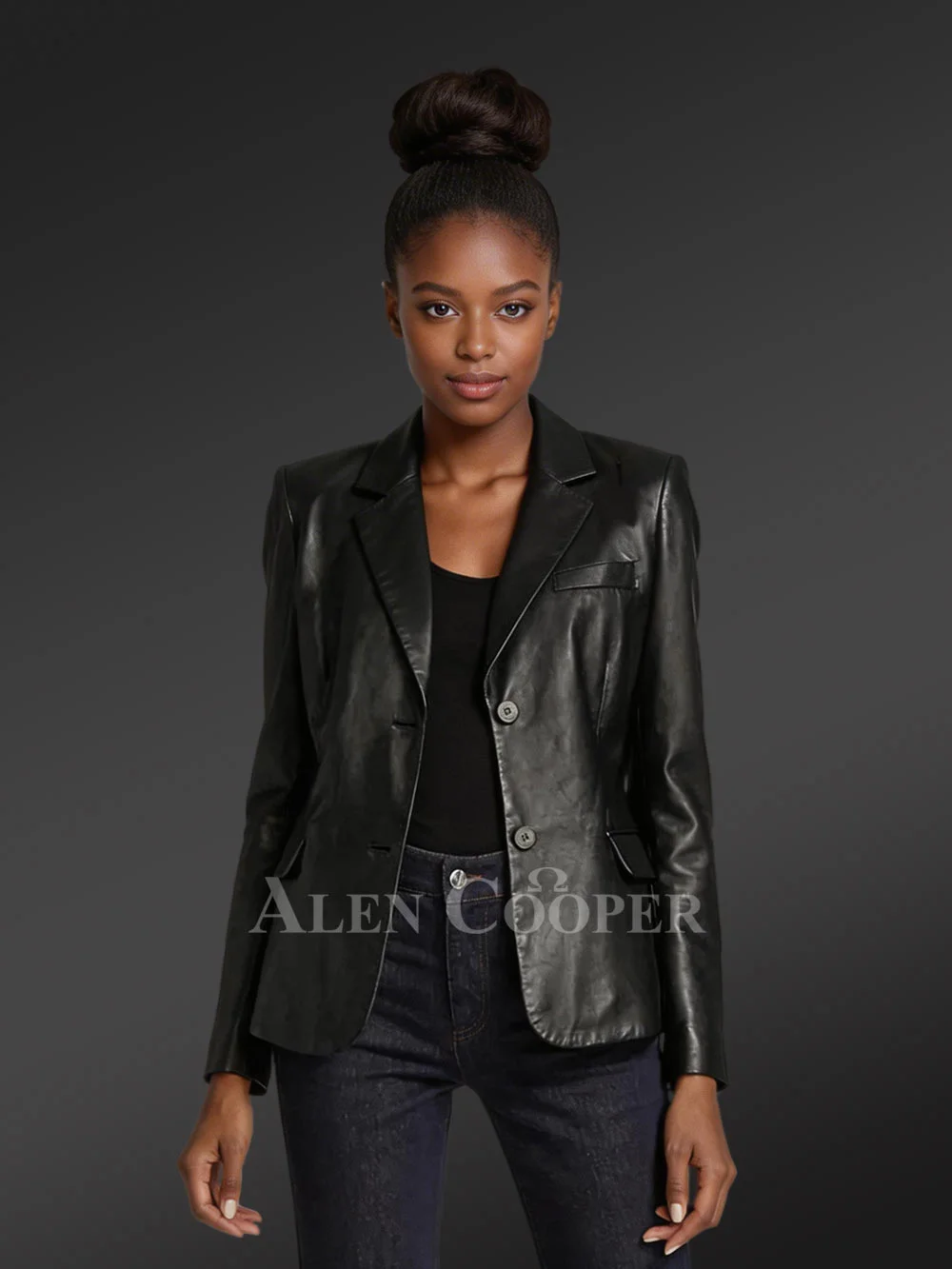 Ladies’ Leather Blazer for Greater Charm and Appeal in Black