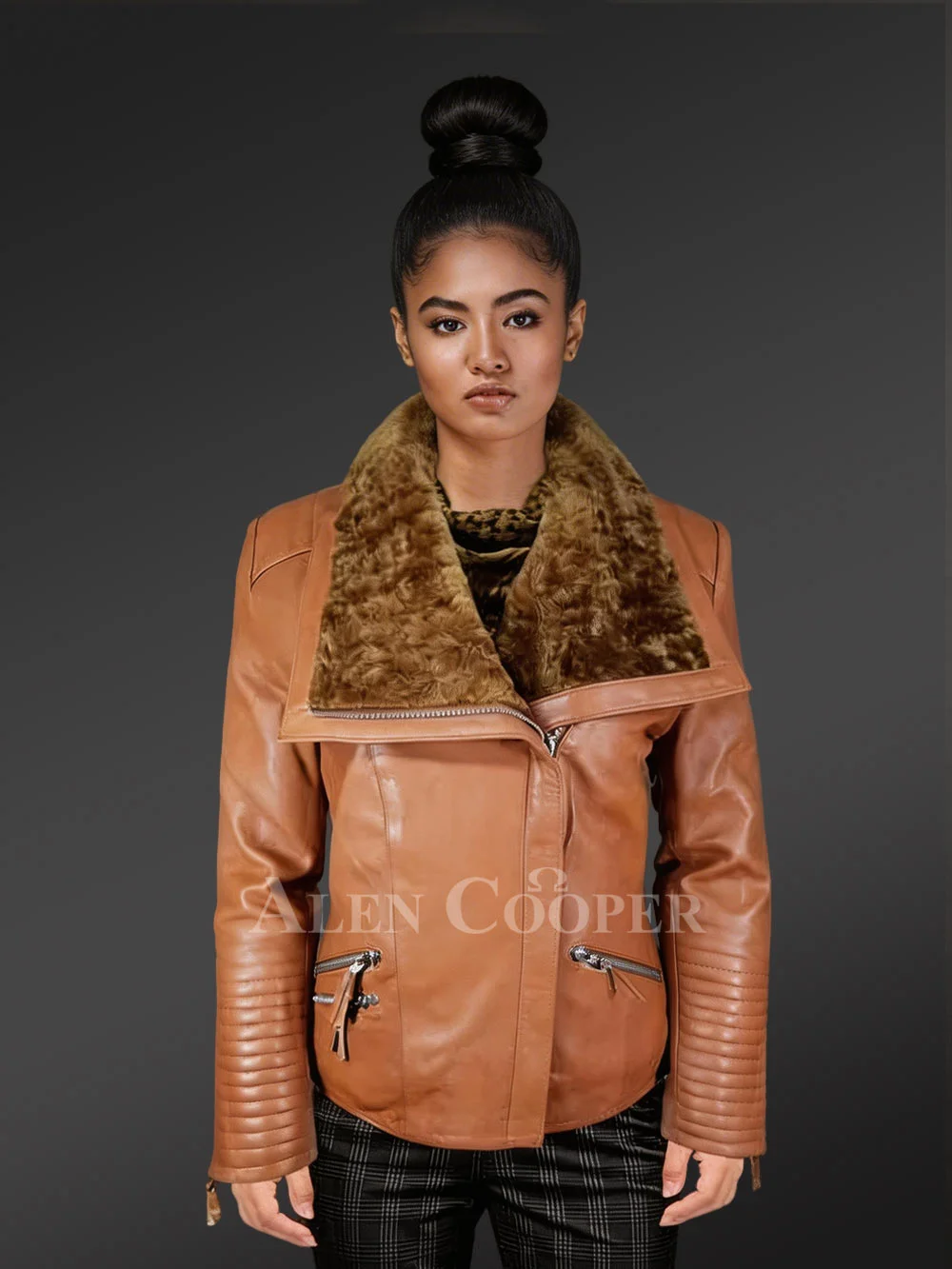 Womens Shearling Jacket in Tan Shade – Look Elegant Enjoying Comfort of Shearling