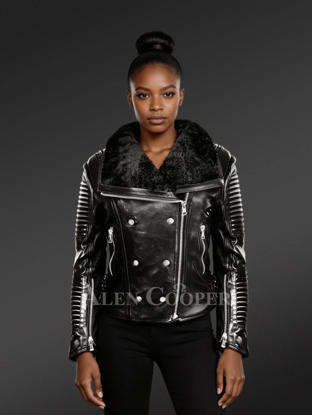 Womens Black Lambskin Leather Biker Jacket – High-Fashion Looks with a Plush Feel