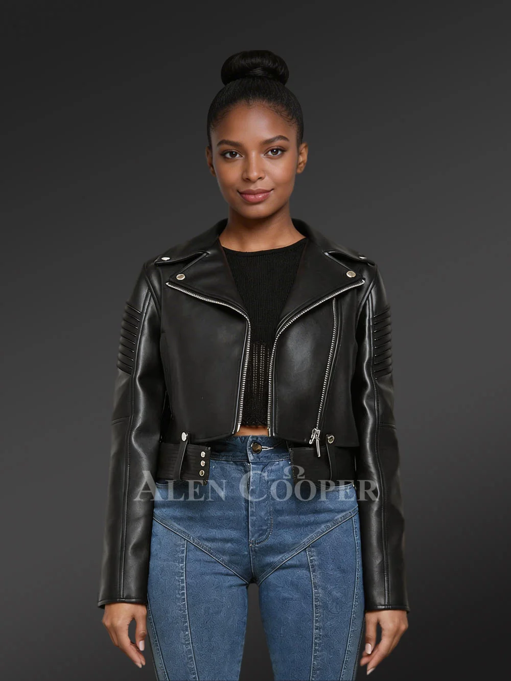 Leather Crop Biker Jacket for an All-Time Fashionable Look