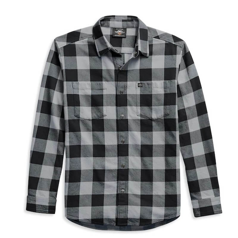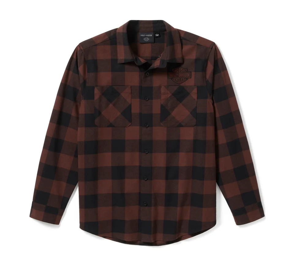 Men’s Bar & Shield Buffalo Check Flannel – Plaid – Harley Black & Coffee