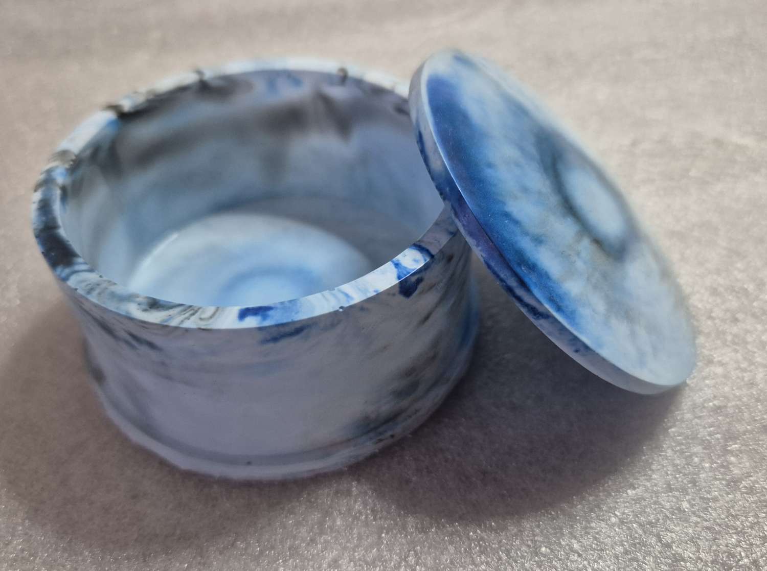Small round marbled blue trink…